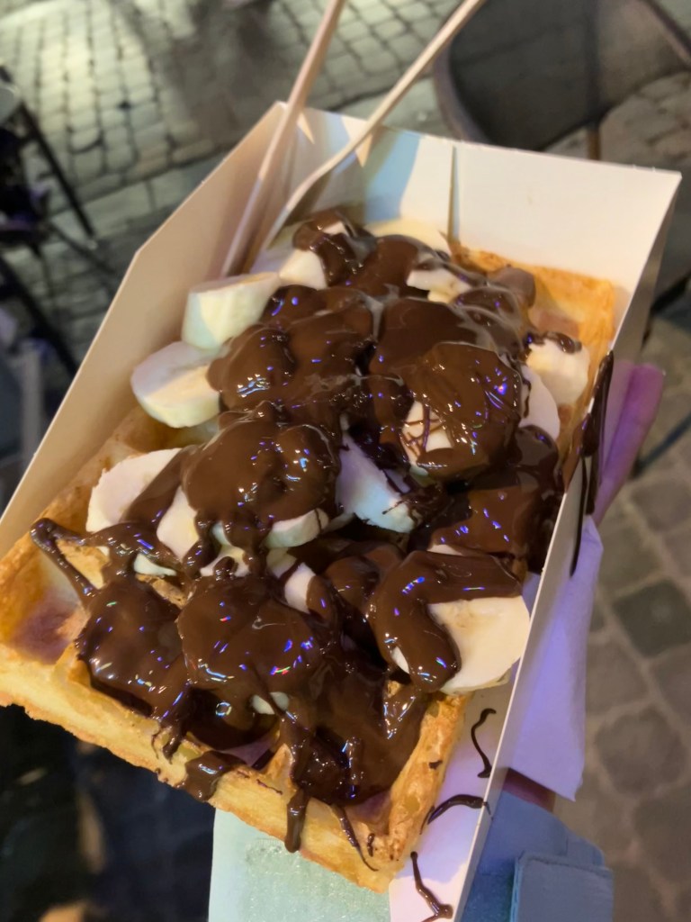 Going to Belgium and not eating chocolate and waffles should be a crime, I don’t think your Belgium experience could be complete without them! What’s better than ordering a crispy, warm waffle from a street vendor and eating it while people watching? Or going into a little chocolatier and choosing from an endless amount of truffle flavors. Waffle stands and chocolate shops are sprinkled all throughout the city, but you may want to go earlier in the day because they seem to close earlier in the evening. One concern some may have about going to shops and vendors is the language barrier, but fret not, Belgium has many English speakers, especially in shops near touristy areas. I speak a little french, but I still had to ask one of the chocolatiers to translate all the truffle flavors. Also, if you’re chocolate obsessed or have a loved on at home who is, boxes of truffles make a great souvenir! I brought home a small box of about 9 truffles that was easy to fit in my bag, and I had a really great time sharing them with family and getting to tell them stories from my trip!